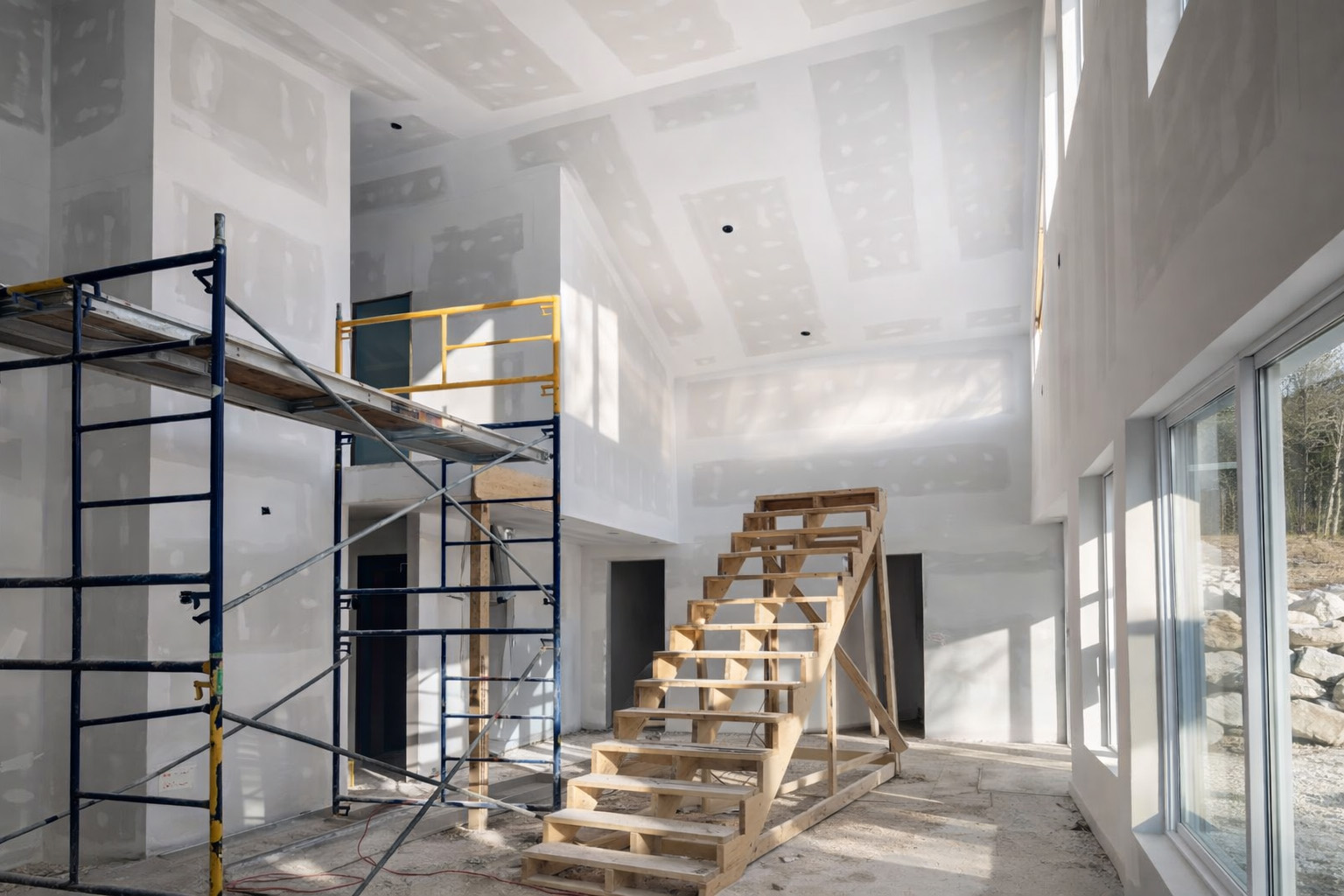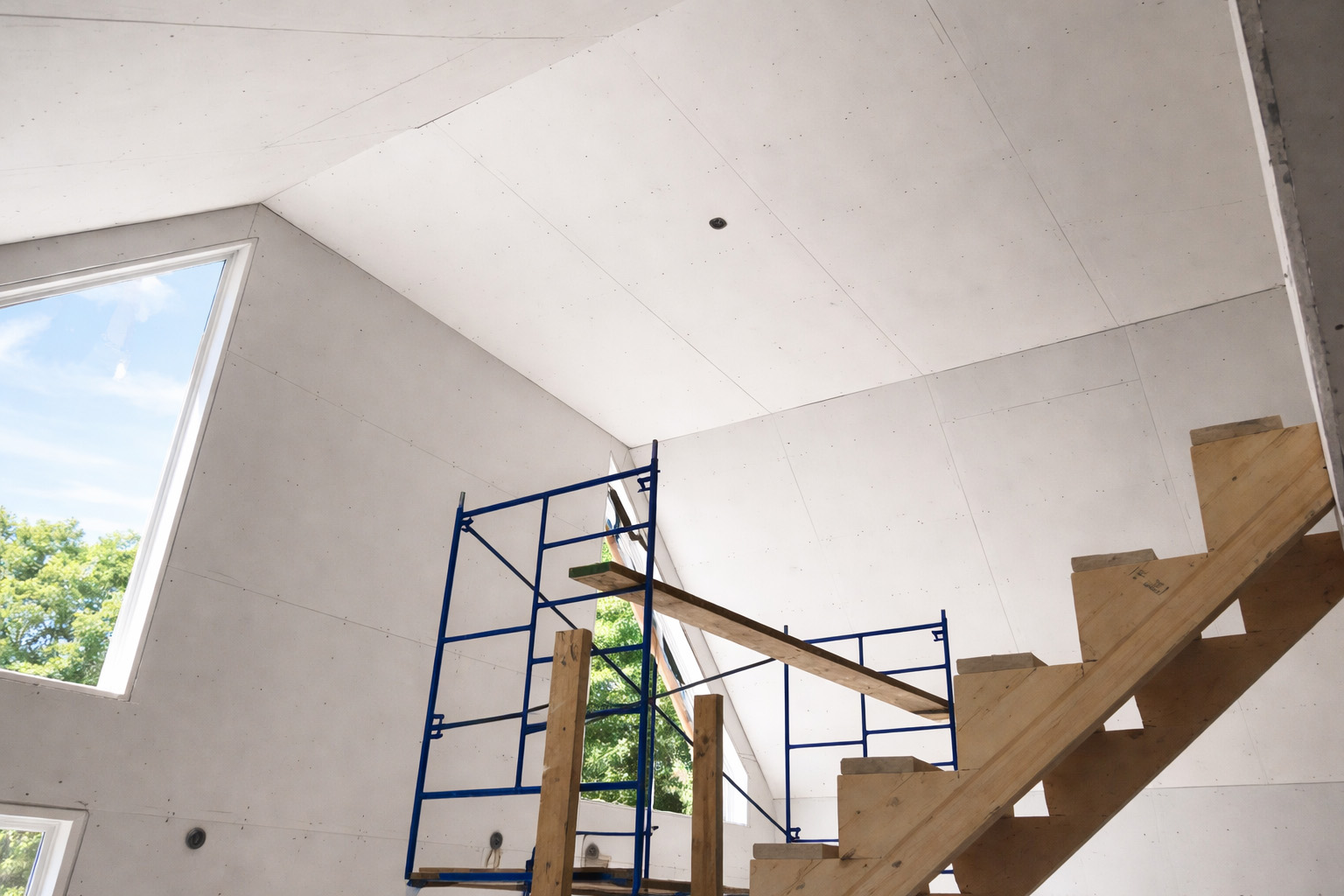 Installation professionnelle de gypse, joints, plafonds suspendus et colombages métalliques, avec une finition impeccable.